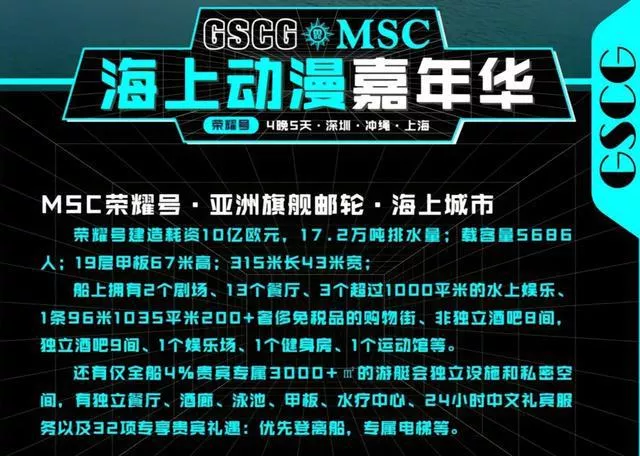 首先漫展是在这艘世界最大级别的超豪华的超级客轮MSC荣耀号上举办