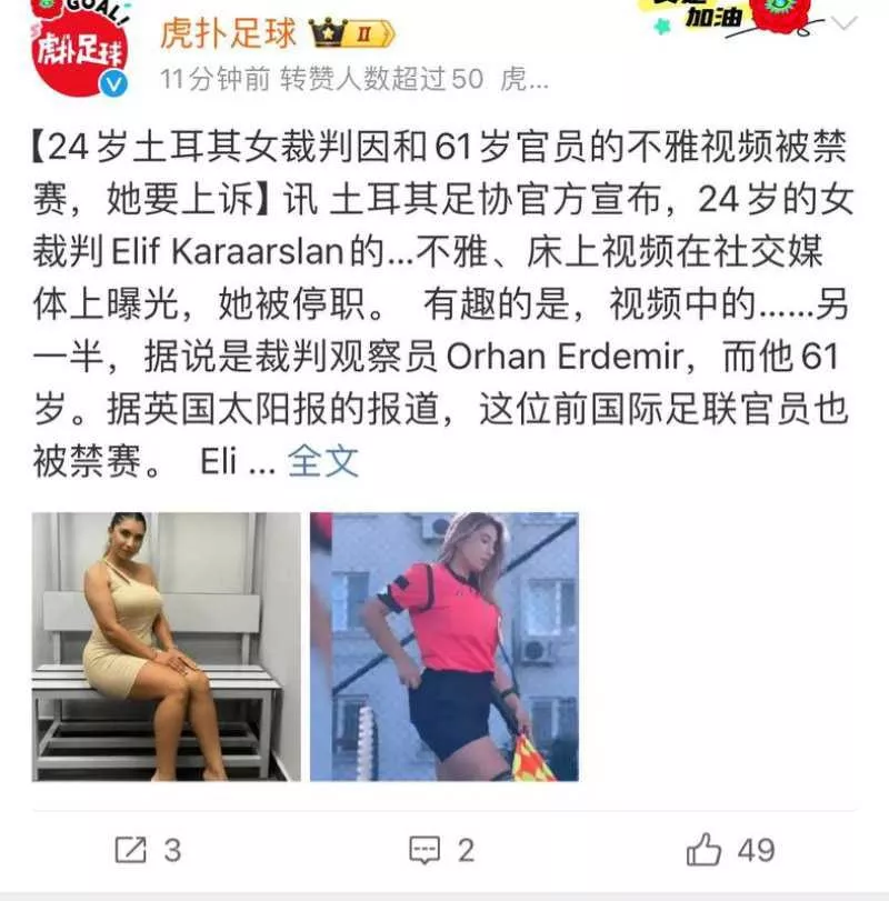 土耳其一位24岁的女足球裁判因其网络知名度而受到关注,近期却因与欧足联一位男裁判观察员的不雅视频曝光而引发广泛讨论。视频中,这位名为埃利夫•卡拉尔斯兰的女裁判助理与61岁的观察员奥尔汗•埃尔德米尔似乎出现在令人难以启齿的场景中。