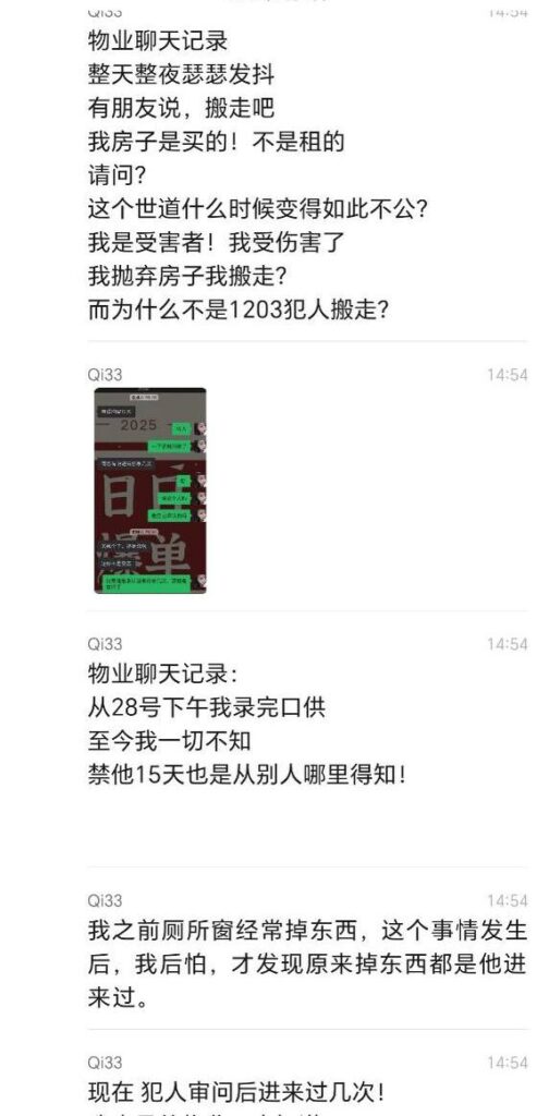 苏州青云府近日曝出一起令人震惊的事件:一位独居的单亲母亲声称长期遭到邻居盯梢,并公布了大量证据,指控隔壁邻居多次翻窗闯入其家中、图谋不轨。此事引发广泛关注与质疑——对方是否受到不良影视内容影响,行为失去分寸?