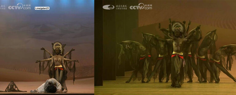 想不到你这浓眉大眼的官方频道竟也搞起了色色?央视网大型舞台剧首次线上直播,没想到在这一直播就搞了个大活,在第一幕出场的几位身材绝妙的舞者竟然全都是真空出镜,只穿着黑纱上衣,匈前美好几乎清晰可见。