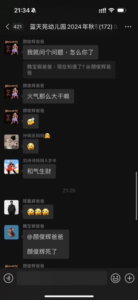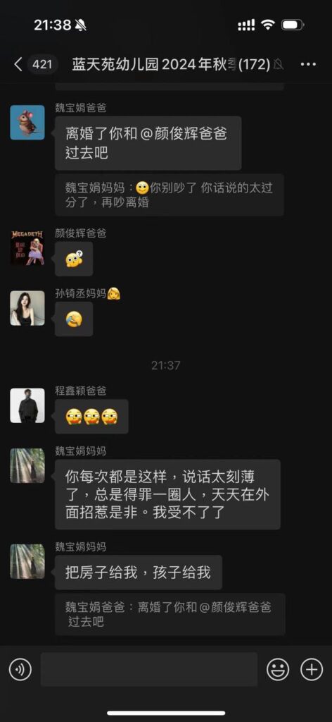 “我阳痿有错么”,一句话成功让一个小小的幼儿园刷爆网络,蓝天苑幼儿园家长群,过激的丈夫在群内开启骂战,毫无理由的挑事被其余家长怼到自闭,怀疑自己老婆和别人有染,最终成功上演无能的丈夫戏码。