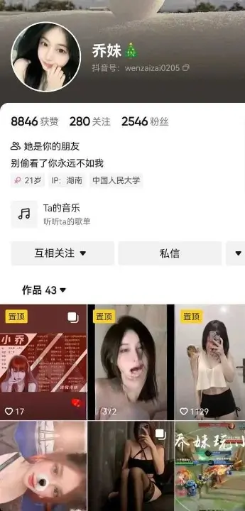 抖音擦边小网红 乔妹 喷血高价视频流出