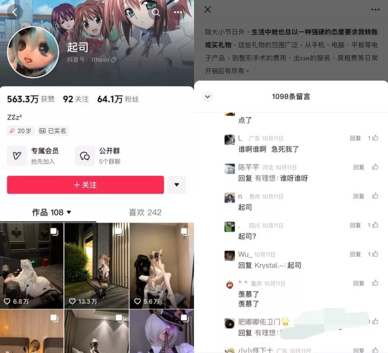 抖音65万粉丝网红coser起司被爆pua精神控制男友