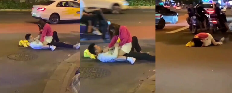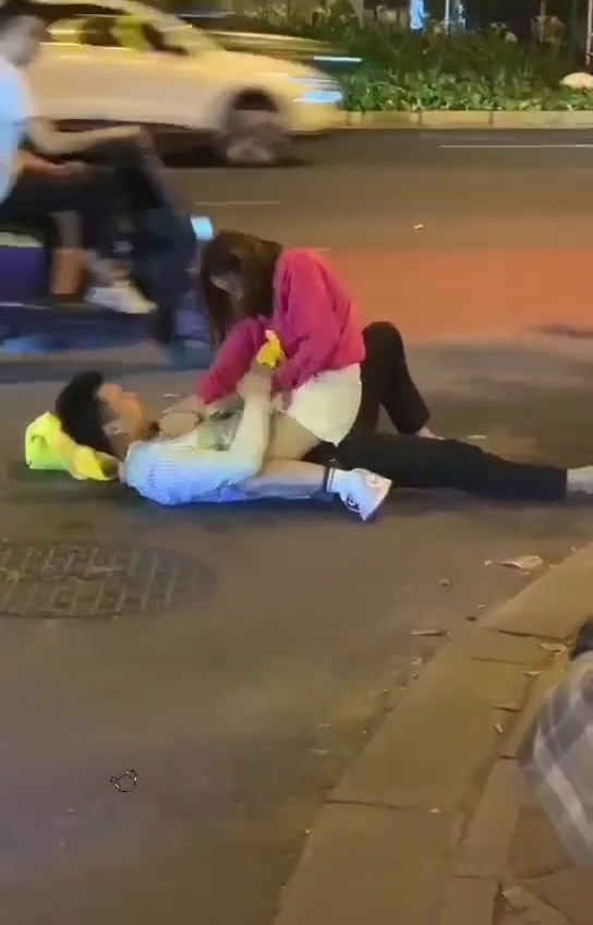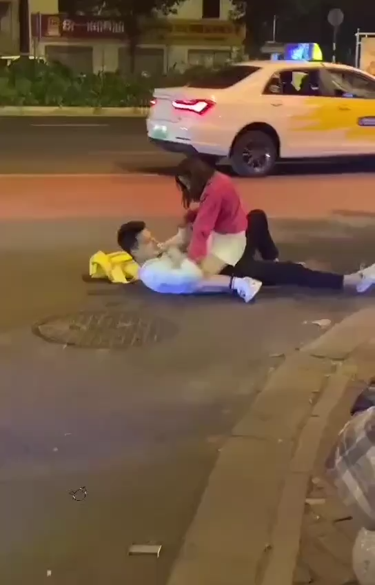 咱就是说,喝酒一定要吃点菜再不行搞点花生米也可以,只喝酒就会变成这两位,天为盖地为席,当着几十号人的面,在大马路上就开始搞起成人动作片。