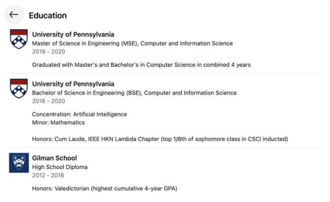 路易吉在宾夕法尼亚大学仅用4年的时间完成了工科的本硕连读。他本科阶段主修人工智能,同时辅修数学。在求学期间,他曾担任宾大和斯坦福大学的助教。毕业后,他在加州圣莫尼卡的TrueCar公司担任数据工程师。