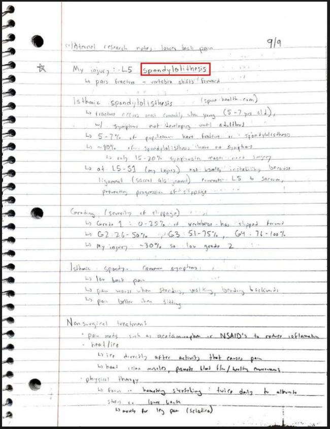 如果感觉还不够,那么接下来有更加有力的证据,那就是这位小哥患有很严重的脊椎疾病——脊椎滑脱,瓜老师在路易吉公开的文件中发现,他自己提到自己患有严重的的脊椎病。