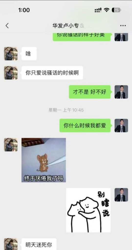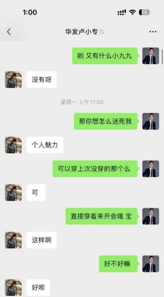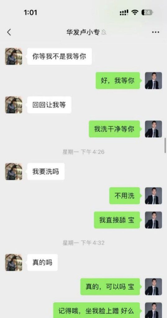 华发集团男高管婚内出轨,营销部女销售卢小专知三当三,家花不如野花香,但正宫也不是吃素的,歼情被发现后露骨聊天记录随之曝光。