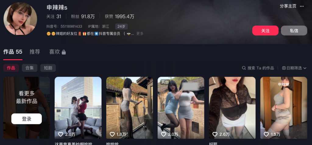 抖音上拥有92万粉丝的热门女网红申辣辣,以优雅的S型曲线著称。她凹凸有致的身材与自信的气质相得益彰,宛若行走的魅力化身,吸引无数目光,让人难以移开视线。