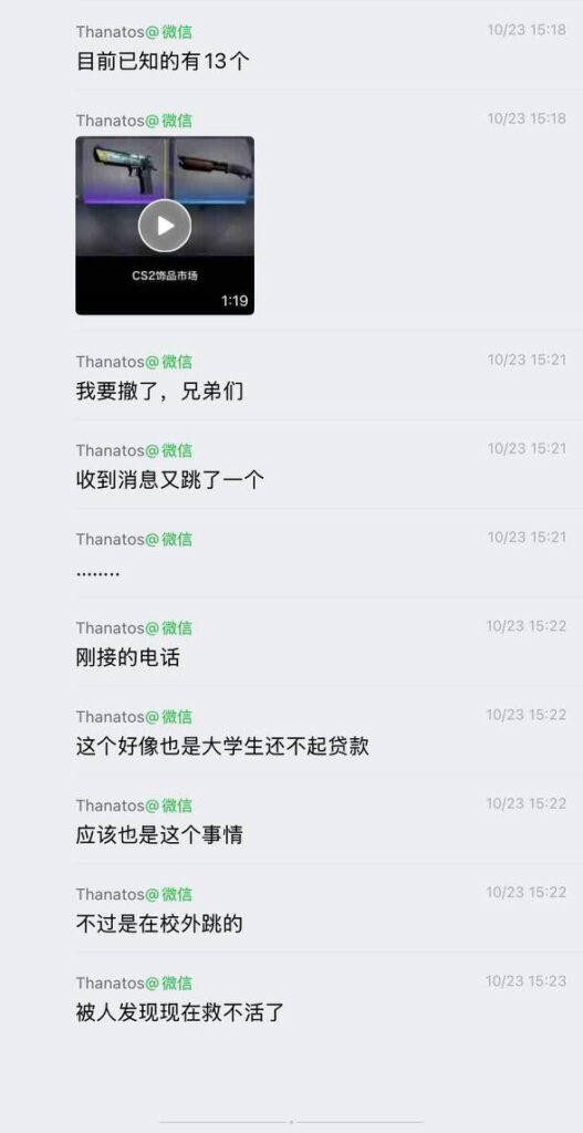 然而因为饰品炒作价格带来的利益,不少玩家倾尽所有进入市场炒作赌运气,甚至网传有三名大学生贷款购物近60万饰品炒作,想不到一朝更新导致价格直接崩盘,当场心理崩溃后,被传出跳楼寻短见的消息。
