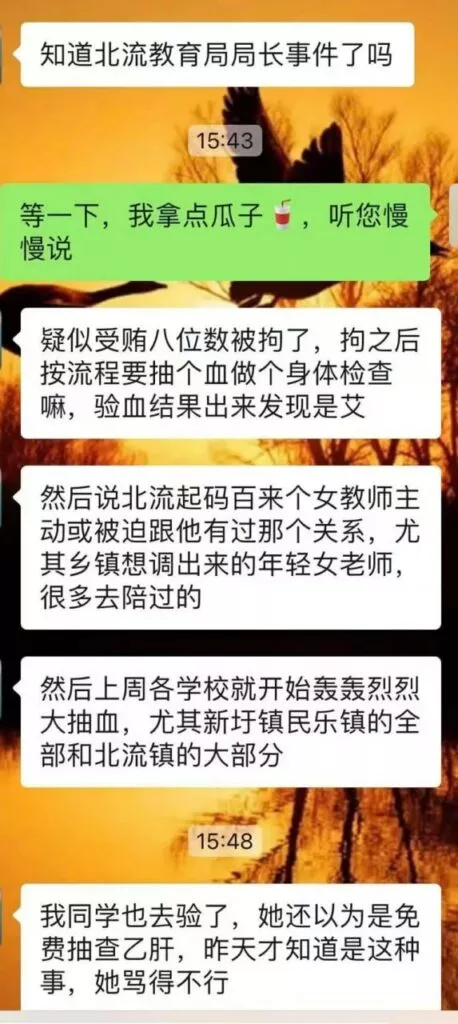 广西北流教育界爆出惊人丑闻:据网上传闻,北流教育局局长涉嫌醉酒驾驶,并与多名女性发生性关系,造成他人感染艾滋病毒,目前已被警方逮捕。此外,网络上还流传着多张截图,显示该局长涉嫌买卖官职等违纪违法行为。