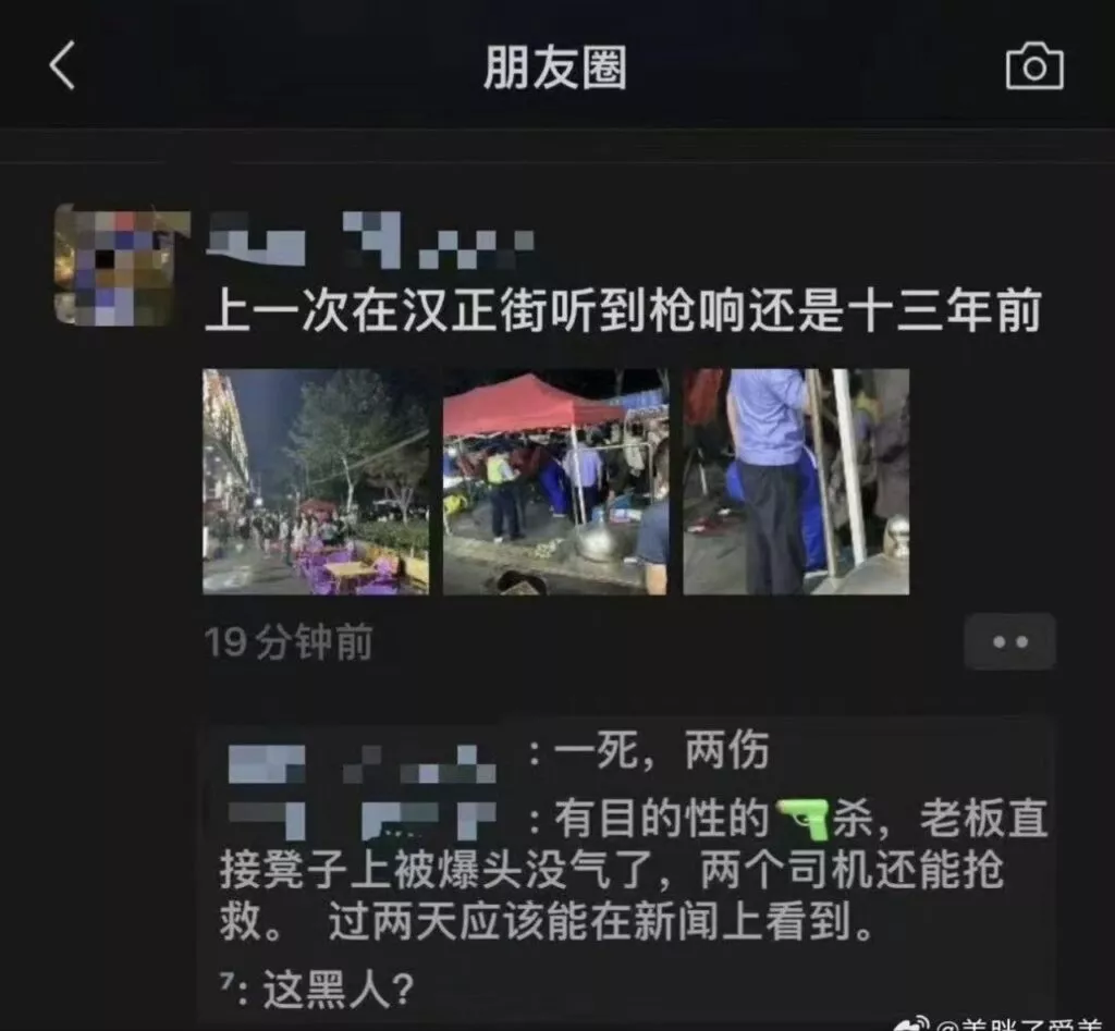 连开四枪??网传武汉硚口区汉正街崇仁路发生枪击事件
