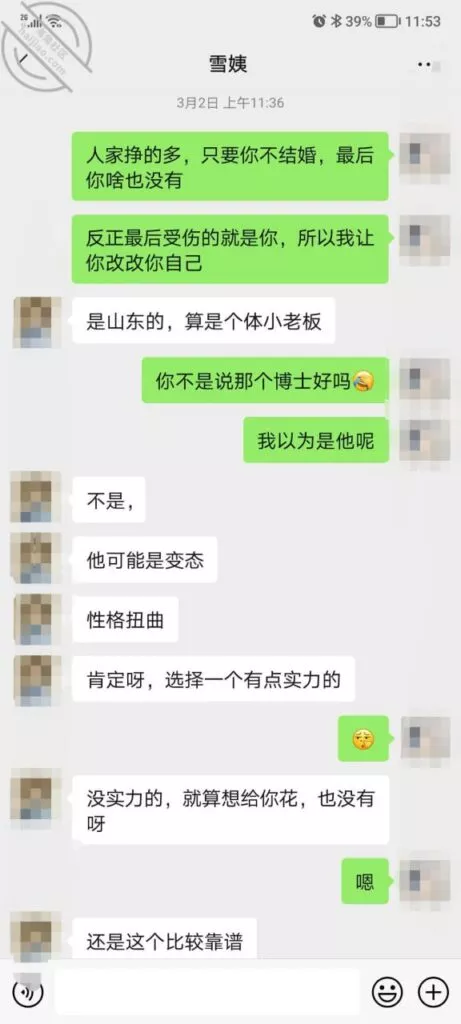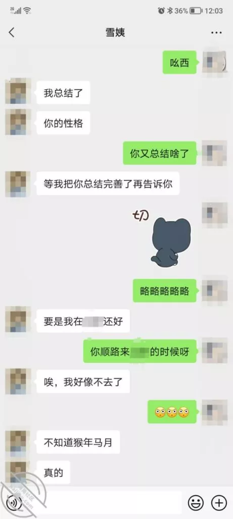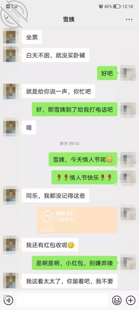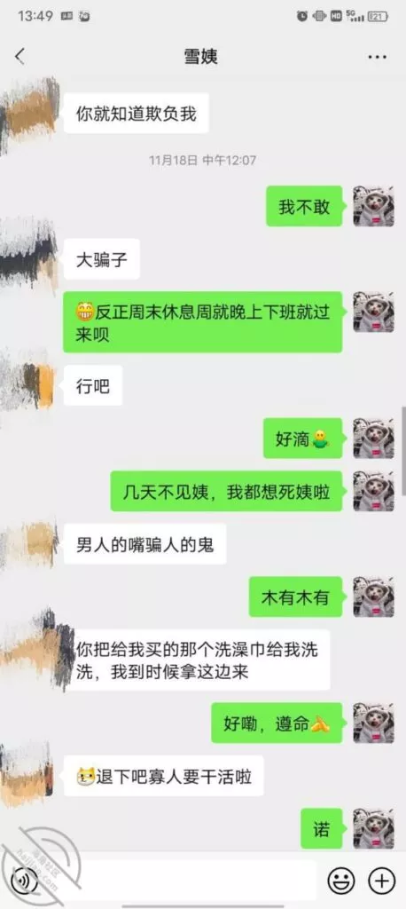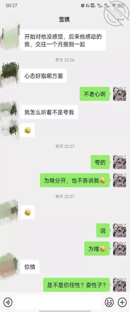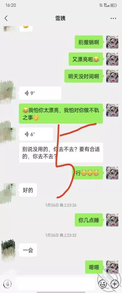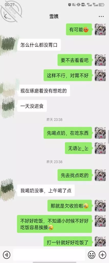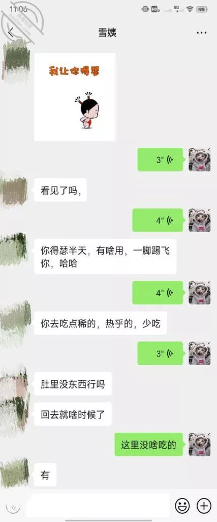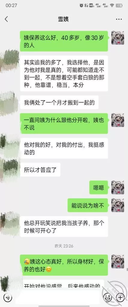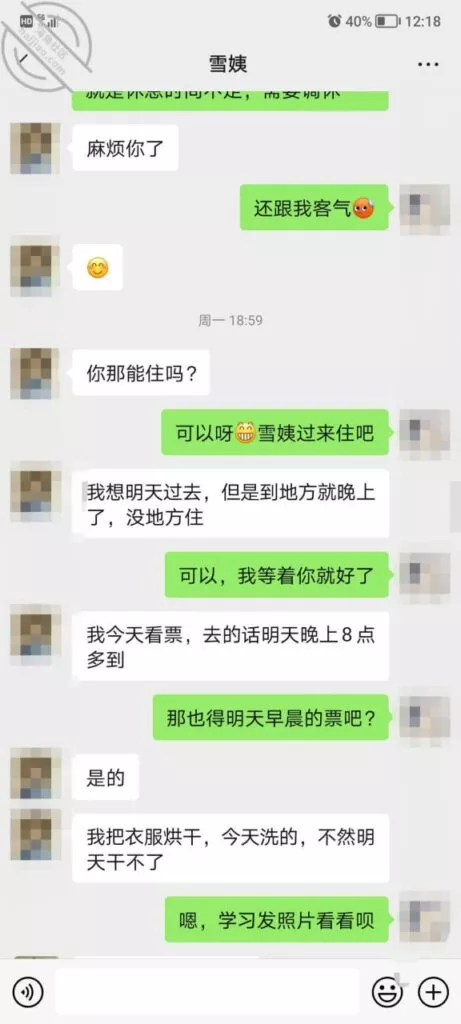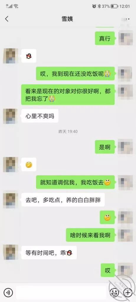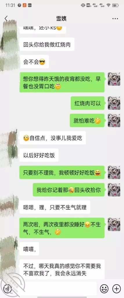 这是快过年的时候跟雪姨聊天的一部分聊天记录