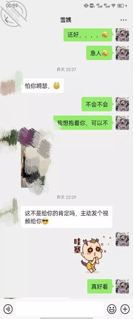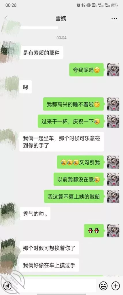 聊天记录太多了,我随便切图一部分给粉丝们分享吧,说真的,我也不知道能不能拿下,也得等雪姨来了再说 等雪姨到了,我给粉丝们多拍几张照片看看