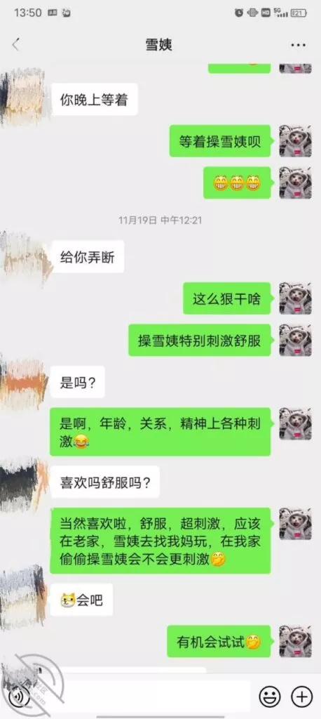 其实我忽然在想雪姨性欲这么强,每天要1-2次我这身体可撑不住啊 ,应了那句话,女人三十如狼四十如虎真是不假,,,自己都哭笑不得不说了,聊天记录都有了,自己看吧!
