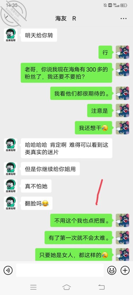 感谢海角老哥的支持,跟他聊一会,我放松下来了。我问过了,老哥答应我的截图我才发的。