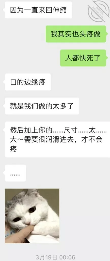 她给我买的润滑液 之前没用过 说我的太大了 疼,还怕她老公看到 就买的全英文的东西。(聊天记录有时间 淘宝有购买记录 贵在真实)
