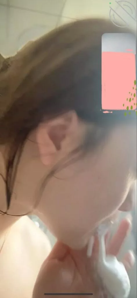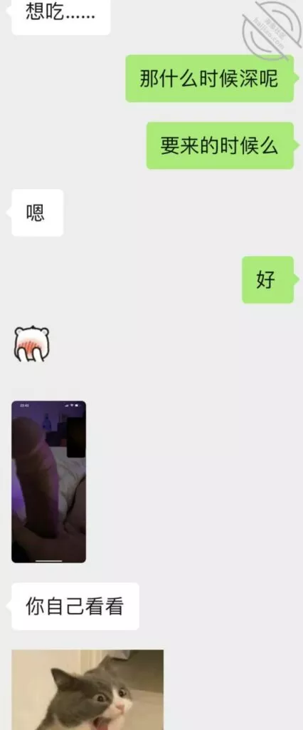 到这里她自己拿起了手机也加入了拍摄,后面发给了我 将它添加到视频里面了。下面的第二张是我拍摄她拿着手机吃着我的大JB