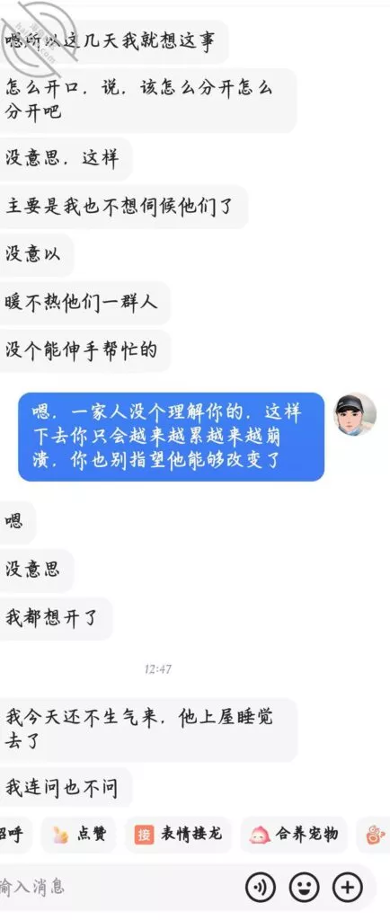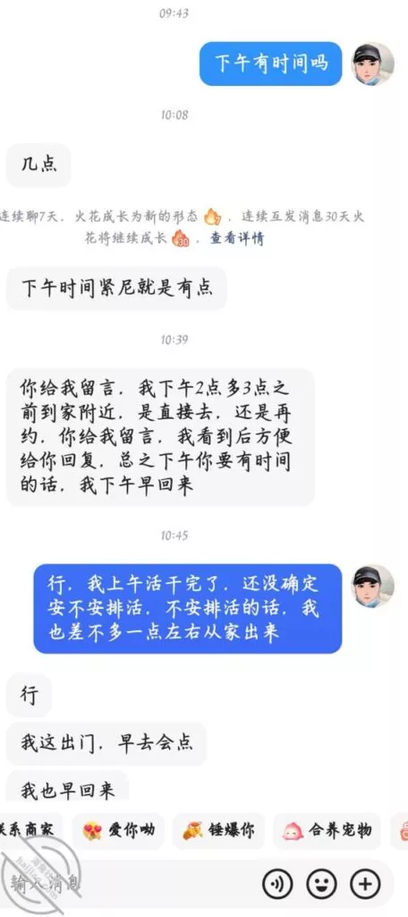 下期视频我会带上认证从我家到她家一镜到底,第三个问题有的兄弟说进展太快,这个有我一方面原因,我每天都和她聊天,进展没有及时更新,主要是工作忙,年前了事情太多,还想着年前多挣些钱。还有就是有的兄弟提议改个名字,今天把名字改了头像也换了。