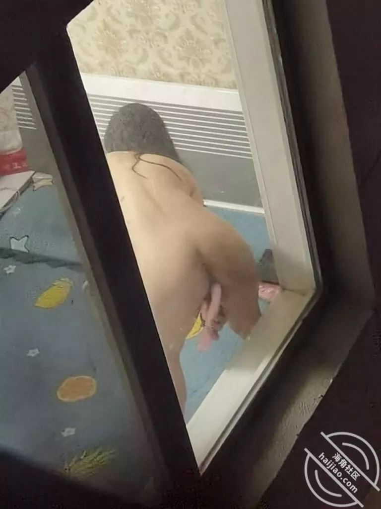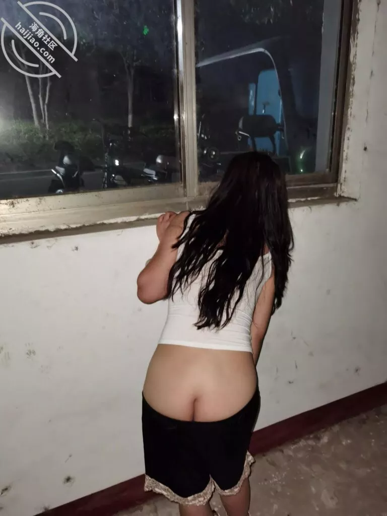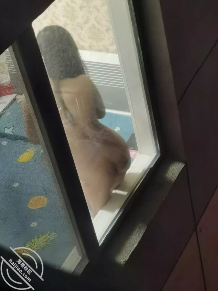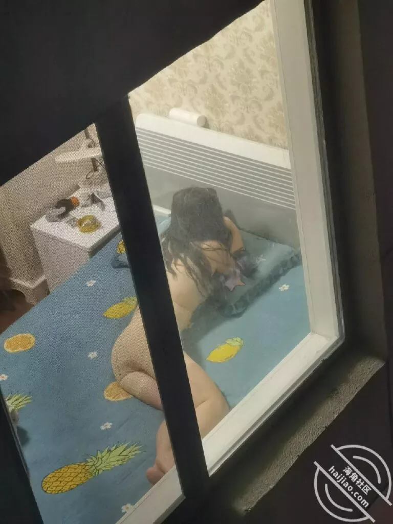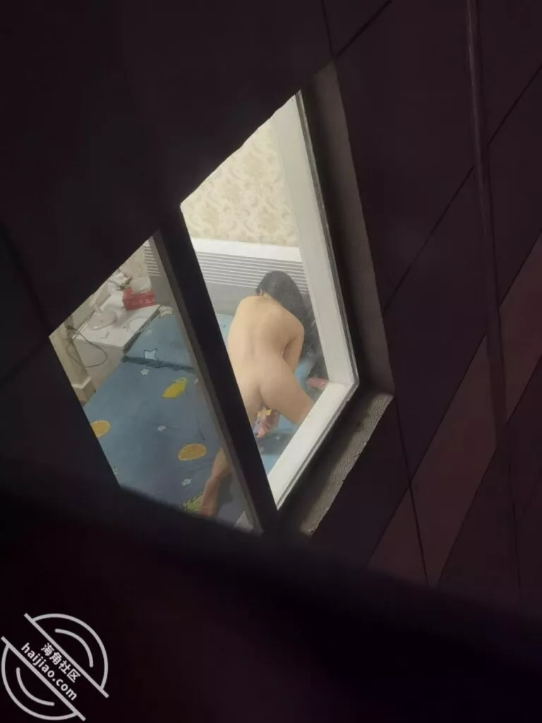 在一楼窗户边上拍照,闪光灯没关,差点被发现,还好窗户比较高,看不到她的搔屁股