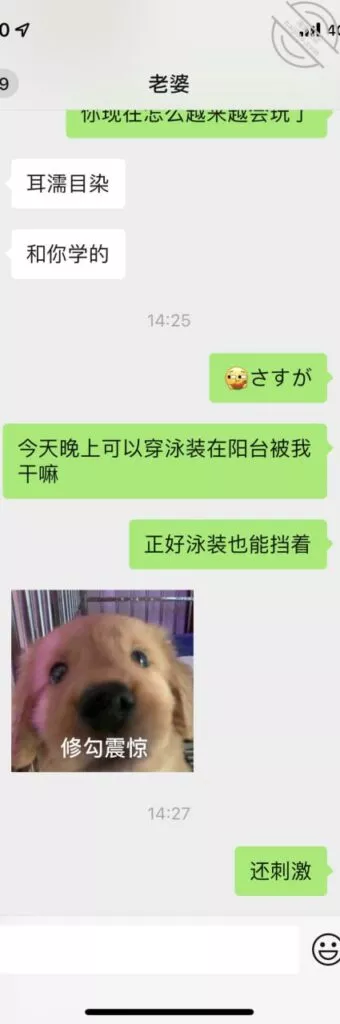 兄弟们刺激的来了 小搔货现在被我训练的可听话了 早上9点上课 她一大早起床化妆去学校 然后我睡醒说了句你今天真漂亮 想干你 然后早上第一节课一下课就跑回来了课都不上了哈哈 进门衣服还没脱就被我按床上艹了 因为时间来不及一直催我肯定射给她(她上午逃课了下午必须去) 兄弟们注意听对话 事后她走的时候跟她的微信对话 晚上在阳台艹她才刺激呢哈哈