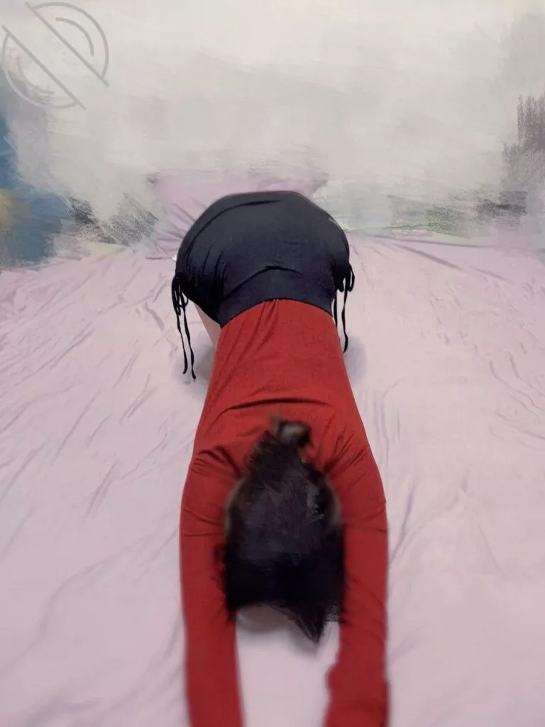 在沙发上唠了半天,她说她累了,要进房间了,我厚着脸皮跟着表姐后面进来房间里,也没脱鞋就直接爬床上了,这个翘起来的臀部是对我致命的诱惑!