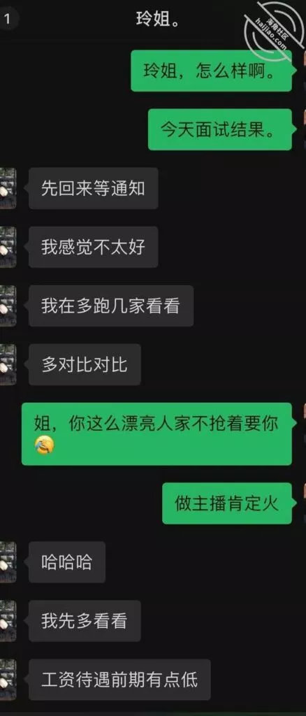 这几天表姐在这里也是想让我帮她找工作,不过以前她是干直播的。我这方面也没有认识人啊。只能说尽量帮表姐找一下!