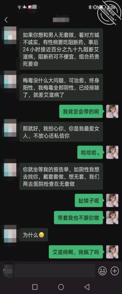 说他有艾滋病,要找我约炮,吓死我了,这小弟弟。才二十来岁,就得了艾滋病,太可怕了,以前觉得没什么,这小哥哥这样跟我一说,吓死我了都要。