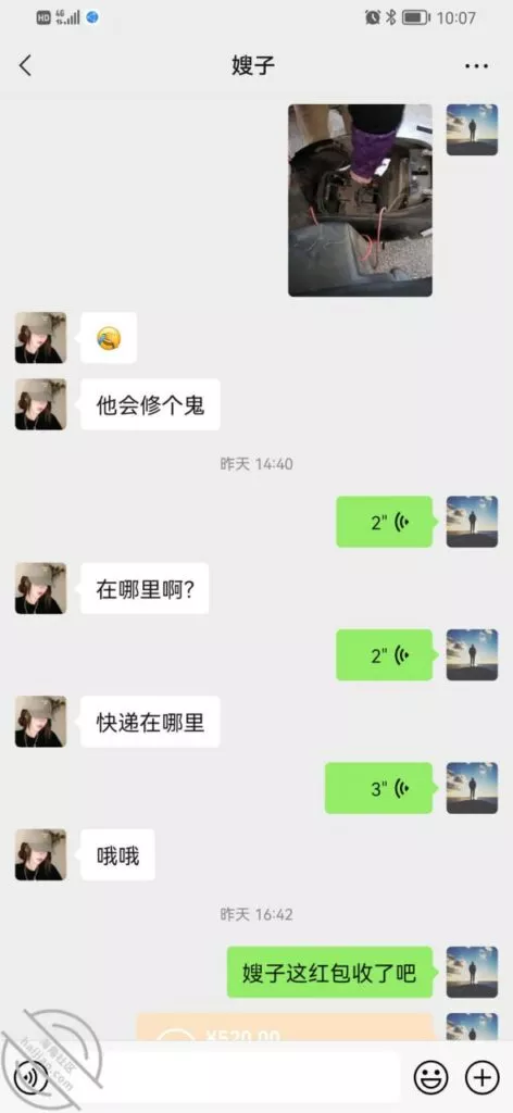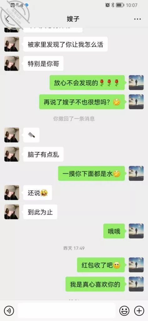 我哥出门后就加上了嫂子微信,前几天给她发微信爱理不理的,一个红包尝试一下知道了嫂子的性格,喜欢红包没毛病,就怕她不贪小便宜。通过红包吸引嫂子玩真心话大冒险果然有效,再次感谢给这建议的兄弟!