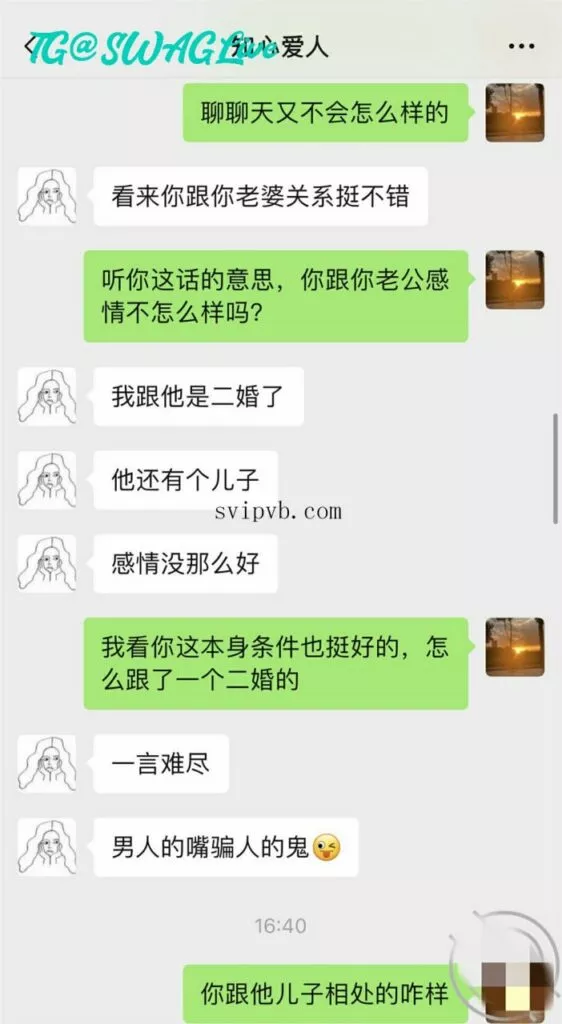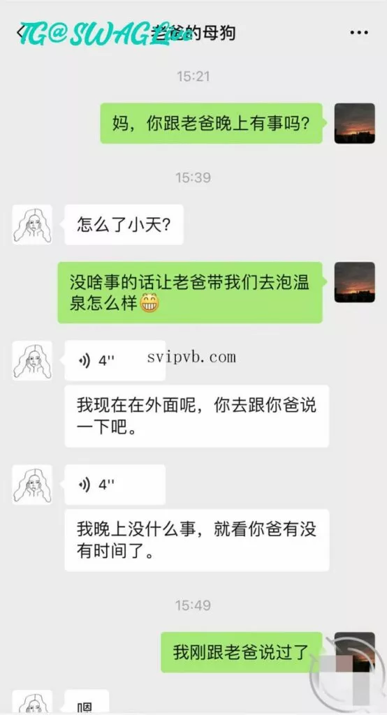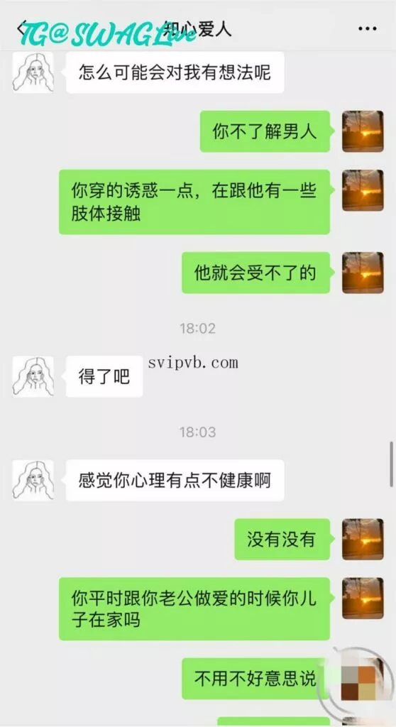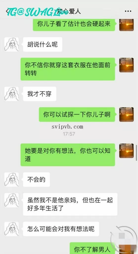 兄弟们,这俩天没更新是老爸一直在家,她这俩天感觉有点故意的避着我,一直没什么机会下手,昨天用小号加了一下老妈,到今天下午才通过好友(这一招还是论坛的兄弟告诉我的) 刚通过我就找老妈聊天,我就假装是邻居,一聊才知道老妈应该挺放荡的,本来不知道是什么原因导致老妈这两天躲着我,今天这一问才知道,就是因为那天去厕所看到她的B了,她感觉挺尴尬的 她跟我老爸的感情应该不是很好,感觉她说的意思是我老爸满足不了她,也不知道她自不自愉,我要让她主动的来吸引我,想着就很刺激啊兄弟们! 明天在找老妈聊聊,看看能不能套到搔B的照片,先给兄弟们看下聊天记录吧 兄弟们感觉怎么样
