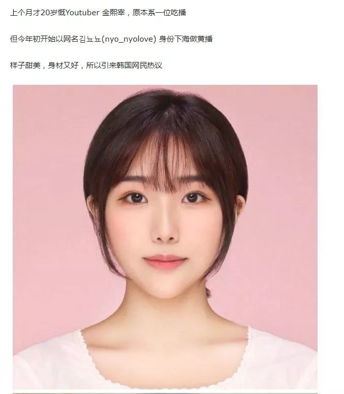 Youtube20岁韩国美女吃播网红金熙宰化名nyolove下海做黄播
