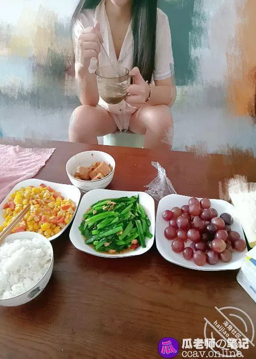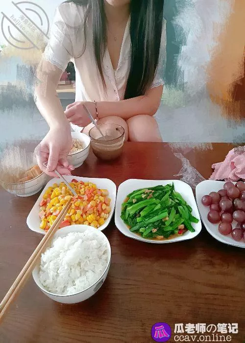 到了中午饭点,专门给我做了我爱吃的,有五花肉炖粉藕,还有油麦菜炒肉,玉米粒配午餐肉,还给我盛了满满一碗饭,这是怕我吃不饱呀,我正准备拿起手机发个朋友圈的时候,突然发现姐姐在家怎么不穿内衣呢?