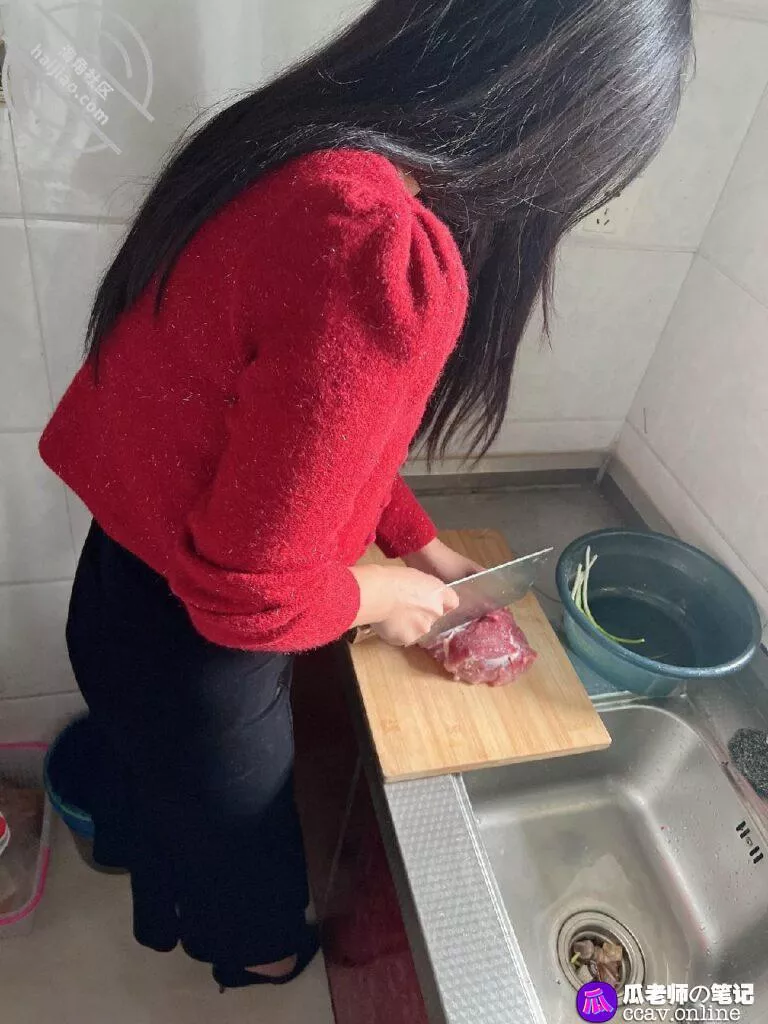 我站在厨房门口跟我姐聊天,她没注意到我偷拍到她,看着我姐的扔沟,真大