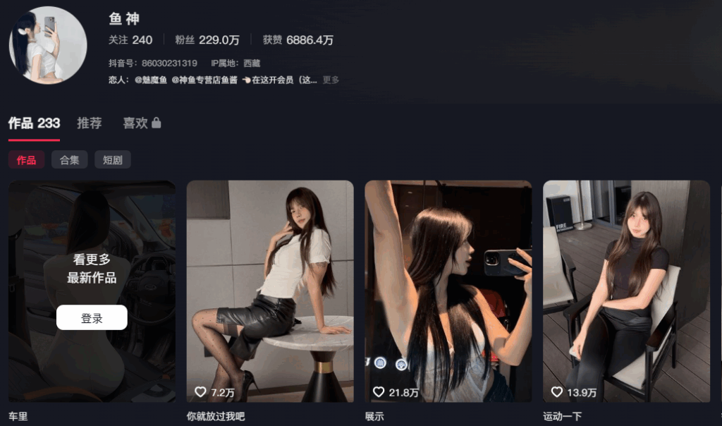 抖音粉丝已达230万的热门网红“鱼神”,被誉为顶级“纯欲”风格代表。她以匀称性感的身材与清新脱俗的容颜形成鲜明反差,凭借独特气质与高辨识度在平台上持续吸引关注。