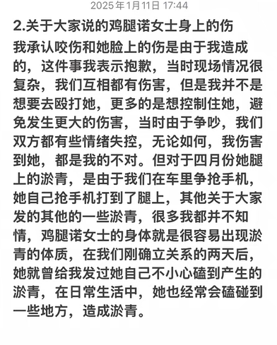 鸡腿诺证实程鑫凯确实对她实施了暴力行为,并附上了多段她遭受家庭暴力的相关视频。她解释称,第一次遭遇家暴是在两人交往不到两个月之时;第二次是在准备见父母前被其强行拖入车内殴打,尽管在程鑫凯道歉后她选择了原谅他。第三次殴打发生后,她到警察局进行调解时,程鑫凯竟在她父母面前威胁道:“你敢把我弄死,我也会弄死你。”更令人震惊的是,在一轮殴打后,他竟要求她为其拍摄广告。