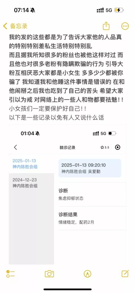 最终,苦主发布了大量因被这位顶级海王折磨而导致的心理和身体不适的就诊照片。在追求疗愈的过程中,苦主花费了不少金钱。苦主后来得知,这位名为刘先贺抖音昵称小尘的男网红其实早已不止一次做过类似的恶行。苦主选择曝光这位渣男,并非出于追求流量或其他私利,而是希望刘先贺的粉丝们能够认清这位男网红的真实面目,不要因其外表迷人上当受骗而后悔。