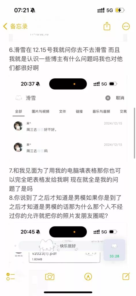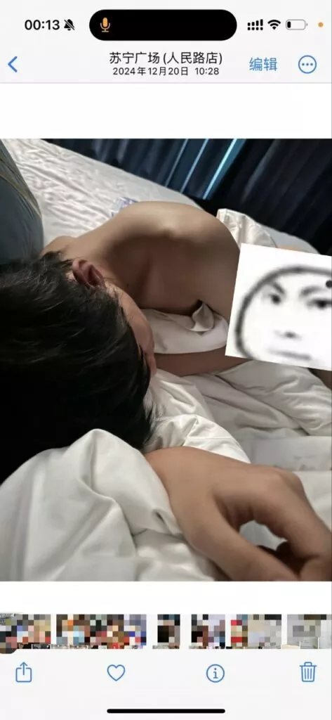 我与小尘2024年9月中旬因一场演唱会相识,并加了联系方式后互关dy,发现共友很多,就当朋友之间聊了一下,此后没聊过,在一次他直播时提起第二次演唱会他去不去,他说去,聊天内容几乎就是抢票事宜和路程、酒店安排,后问他要不要住一间,当时考虑的是演唱会结束的晚有个男生在而且第二天我和我的朋友也要赶飞机不会睡觉,且在一间房间会安全些,演唱会结束后是我们走回了酒店正好饿了之后就去吃了海底捞我还和我朋友直播了一会聊了会天然后我们就又回酒店了三人便小酌了几杯,奈何我们酒量不好很快我们就醉醺醺的了接下来就是一些照片是在酒店的(这个是当时的直播他坐在我的旁边