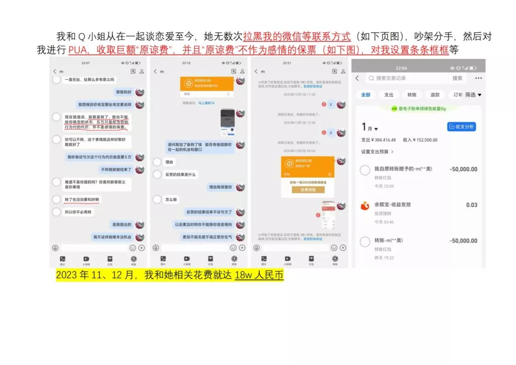 柳州的顶级海后Q小姐覃海美,长期以来对其富二代男友进行Cao控,成功骗取金钱高达60万元。在此期间,她不仅利用男友的财富,频繁与多名男性保持不正当关系,还因此感染了性病,并进行了打胎。然而,她并没有停止对男友的Cao控,直到男友最终觉醒,意识到她的不堪,痛心疾首地撰写了一份长达55页的PPT,以曝光其渣女行径。
