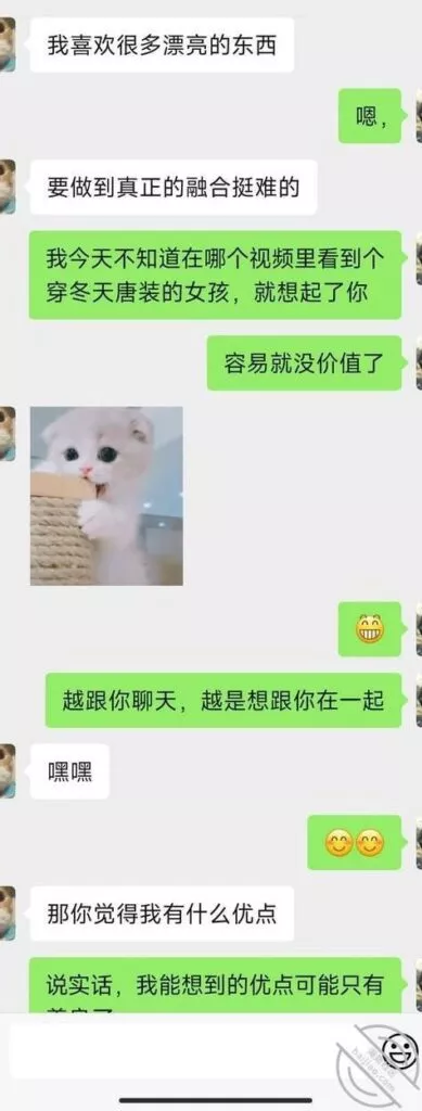 知道妹妹要实习了,于是我就抛出我这有工作岗位可以提供,再多的就不给兄弟们看了,现在就是正常聊天。有新的进展再向海友们汇报。