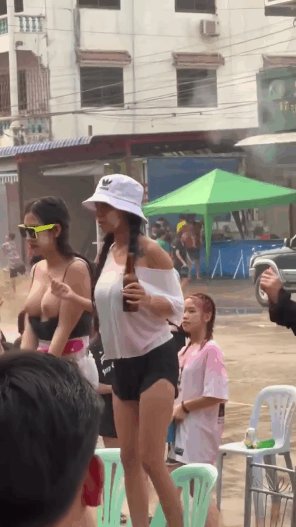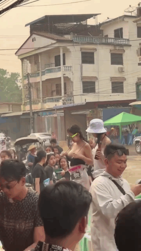 在柬埔寨泼水节上,一位身材苗条的小姐姐意外失态,展现了什么叫做丰盈诱人。一对酥匈毫无保留地暴露在众人面前,场面如此香艳,瞬间引起路人的注意眼光。