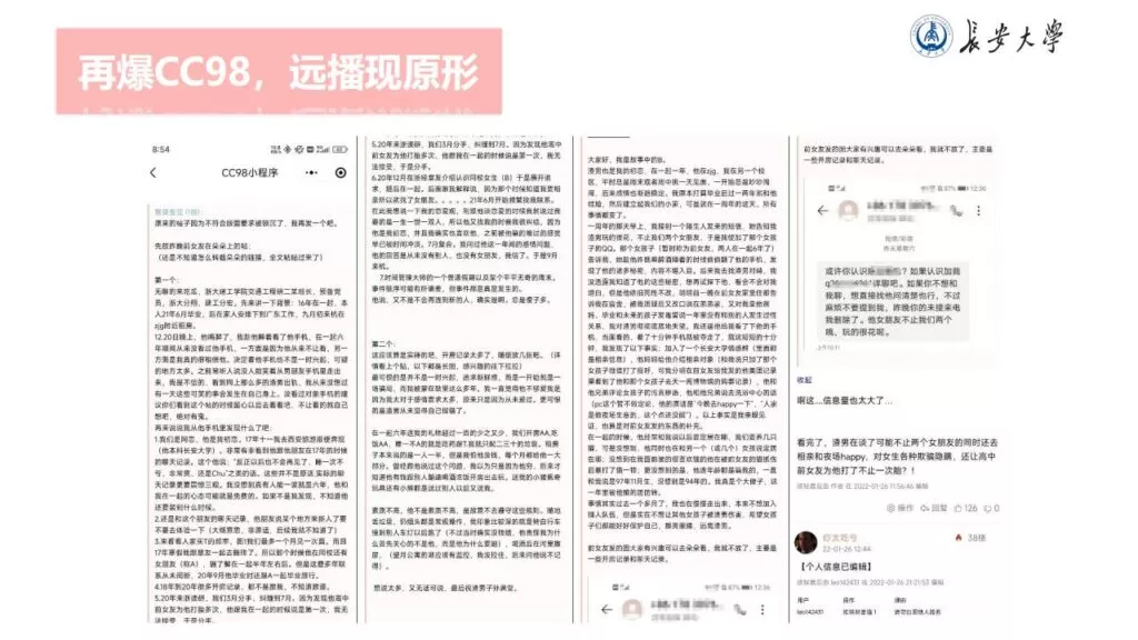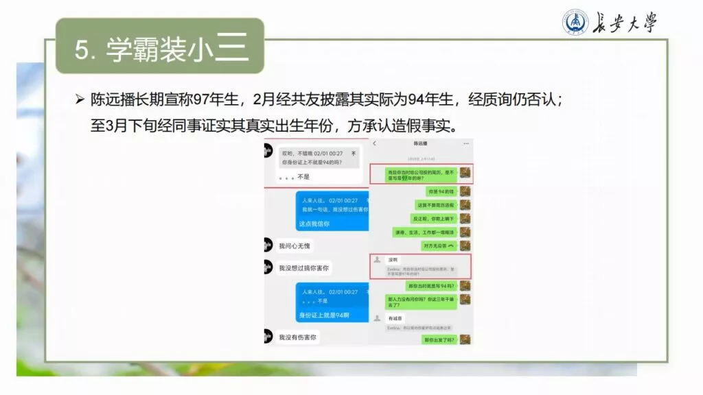 32页的PPT暴露了长安大学一名不道德男性陈远播的行为。他长期进行心理Cao控(PUA)女友,将女友视作免费的性伴侣,甚至劝告她去从事卖银。此外,他大部分时间都在物色新的猎物,或是在出轨的路上,或是已经出轨。