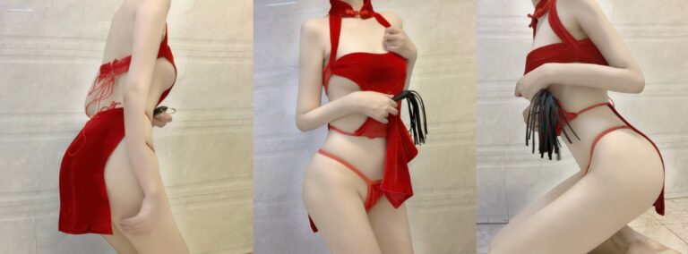 “神秘红色丝绒装美女:相扑猫的魅力与性感之旅”(共16张图片)