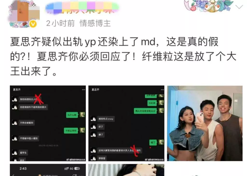 116万粉丝的顶级CP网红夏思齐被前男友曝出私生活混乱,长期存在出轨和不当交往的情况。更令人震惊的是,她因与他人的暧昧关系感染梅毒,甚至将梅毒传染给了男朋友刑万里。