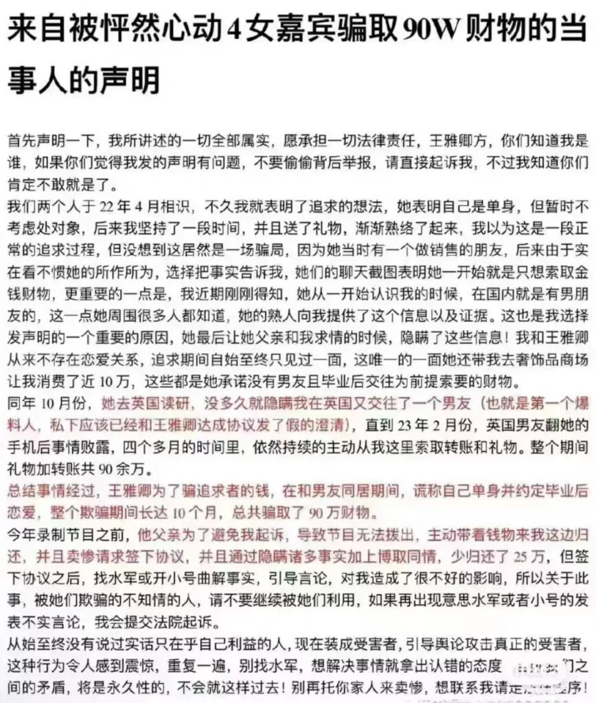 女主卿卿被指与三名男子暧昧不清,长期pua捞金