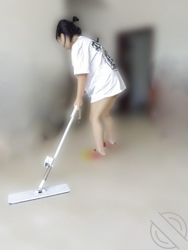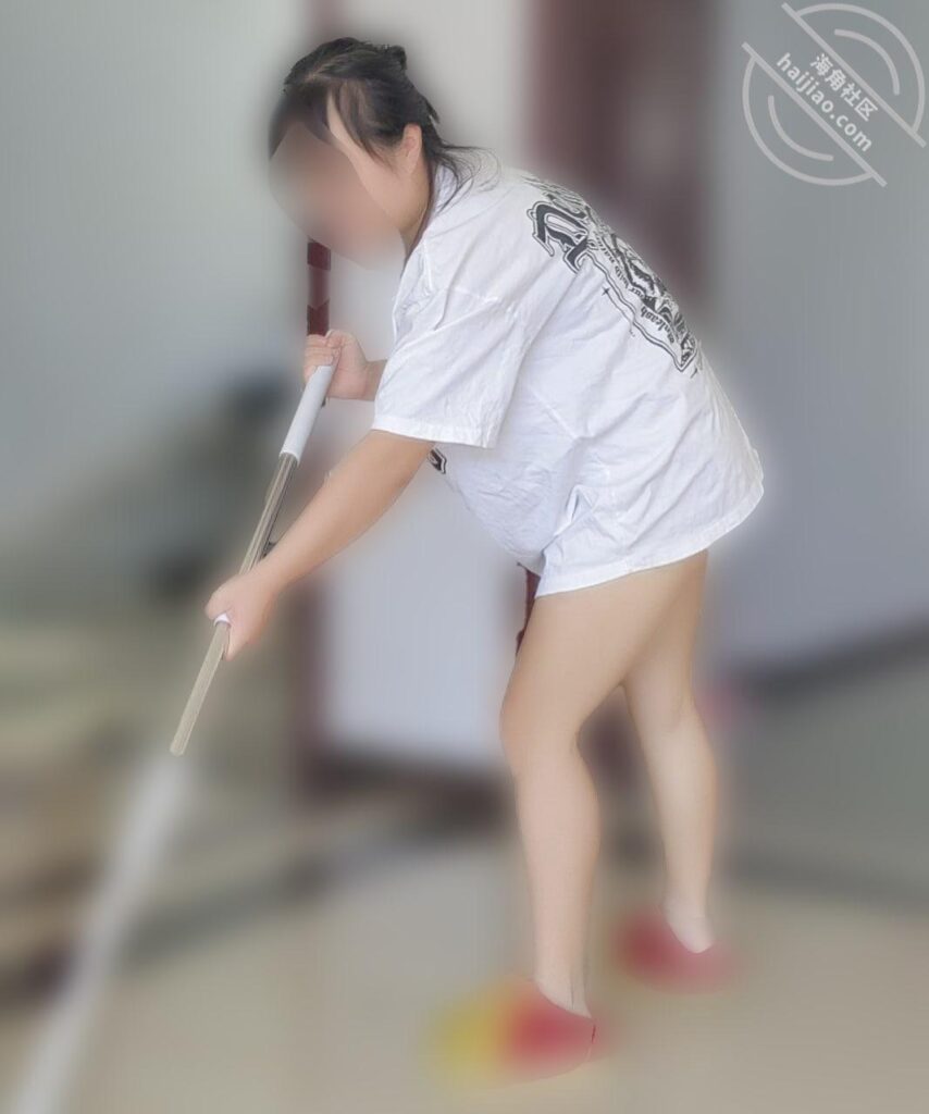 今天休息没有去上班,不知道老妹是故意的还是忘记我今天休息了!大白天的穿着小内裤就开始拖地,一弯腰拖地内裤全看见了,是不是老妹对我不太见外了哦!哈哈哈!