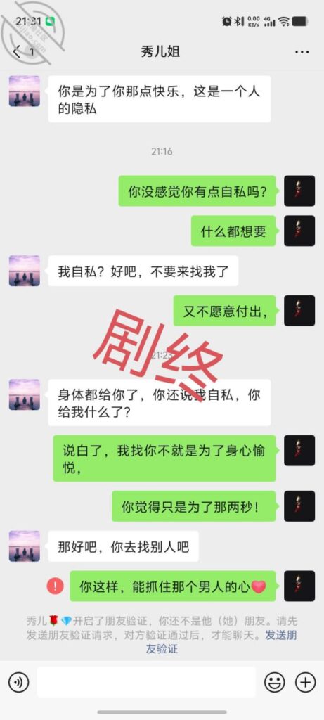 在这里我先给喜欢秀姐的兄弟们说声对不起吧!标题也说了,和秀姐的故事,在这就画一个句号了。说实话也没啥好遗憾的,做i这东西我一直讲的,事件心情愉悦的事情,跟秀姐做其实是有背初衷的,因为跟她做每次都只有射的时候那两秒的舒爽,过程感觉并不好!这可能也是前几任为什么会背叛她的原因吧!