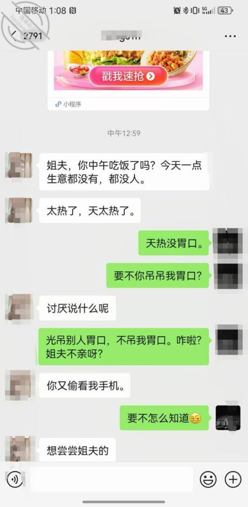 海友说会破坏家庭,说实话我也有点害怕。但是谁能拒绝这样一个天生银娃体质,又是反差,性欲超强的小姨子?这两天没敢去找小姨子。只是点个外卖。小姨子自己有个店,其实根本不用我养。毕竟刚离了婚的女人。想有个依靠缺乏安全感。当姐夫的必然义不容辞。总不能肥水流到外人田。不得不说,小姨子的欲望是真强。甚至说是有性瘾,上次看到他跟网上的人聊搔,说实话我还真有点生气。有网友说这是一个天生母狗体质。我觉得可以往这方面去开发一下。下次有机会一定要尝试一下去野外露出。看看她当着陌生人的面被我CaoB是什么样的反应,想想都刺激。过两天媳妇儿要出差,这不就有机会了。今天店里估计生意不好,这两天都是40多度的高温。连个人影都没有。小姨子肯定寂寞了,饭不好好吃。把黄瓜当成工具来用,还拍给我看,用完再去吃掉估计应该是想吃我的JB。