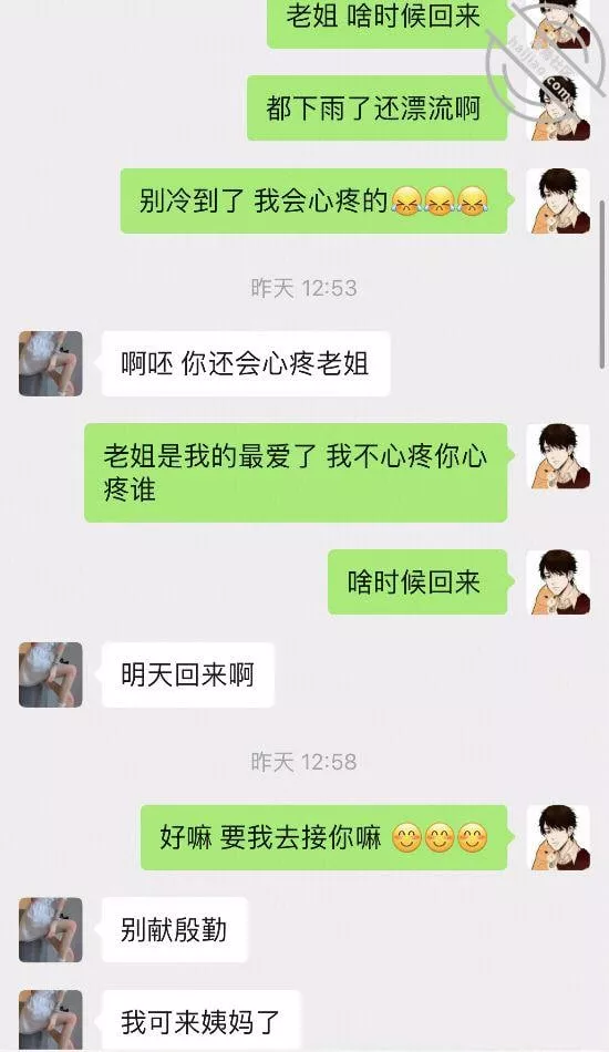 1. 姐姐腿美不美兄弟们你们说 姐姐今天早上和我说要来姨妈了
