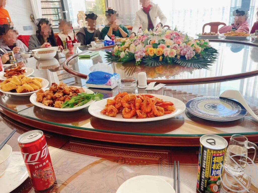 59.新年期间家庭聚餐嫂子脸色红润,哥哥脸上挂满了笑容。