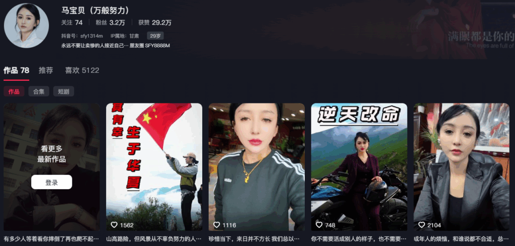 抖音网红马宝贝,自拍自导各种类型的抖音小短剧,打造一手女强人人设,可惜始终没得到眷顾,区区几千粉不成气候,没想到却因为自己用矿泉水自愉的视频突然爆火,一夜暴涨3万粉丝