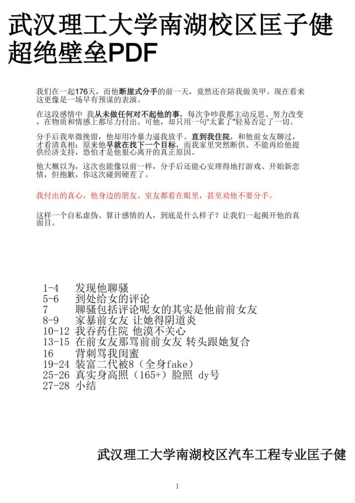 武汉理工大学超绝理工匡子建,半年恋情光速分手,最爱抖音擦边女,一手富二代人设堪比奥斯卡演员,28页ppt痛斥渣男行径。